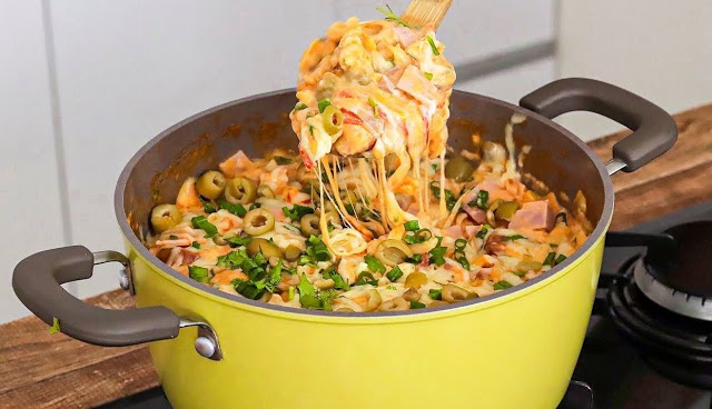 Zum Schluss den gehackten Schinken und den Mozzarella hinzufügen, gut mischen und fertig.