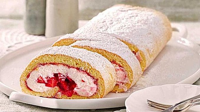 Biskuitrolle mit Erdbeerfüllung