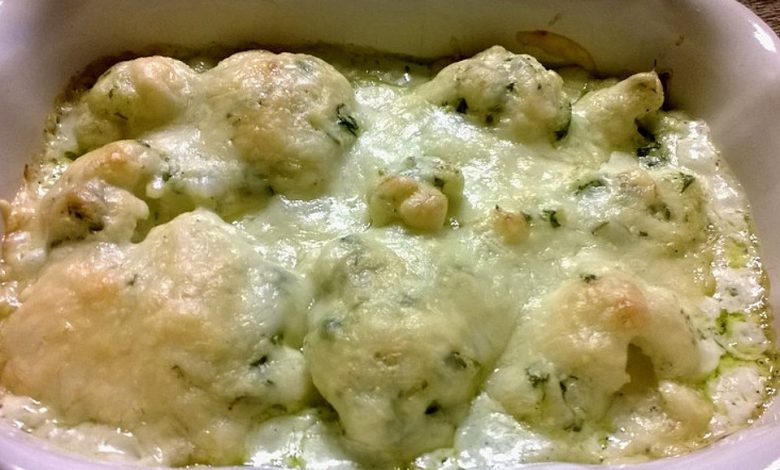Den Blumenkohl bissfest kochen, in Röschen zerteilen und in eine gefettete Gratinform setzen.
