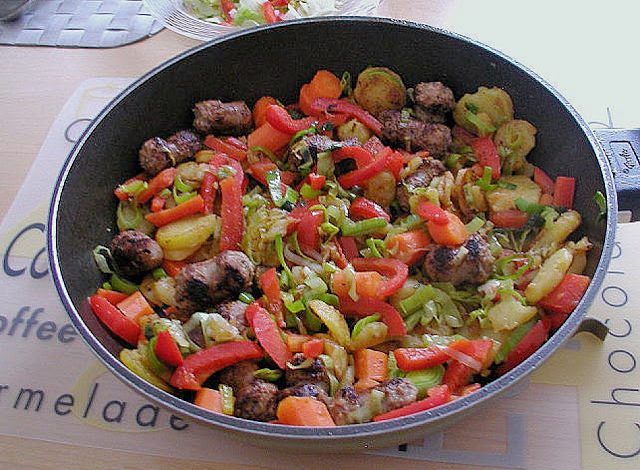 Bratwurst-Kartoffelpfanne mit Gemüse