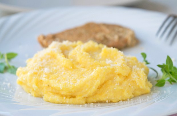 1. Für die Cremepolenta zuerst die Suppe in einem Topf zum Kochen bringen und den Polenta einrühren. Unter ständigem Rühren den Polenta einkochen lassen.