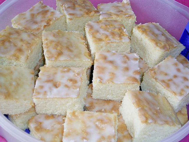 Den Kuchen evtl. nach dem Erkalten mit einer Zuckerglasur versehen. Dazu ca. 4-6 TL Zitronensaft mit so viel Puderzucker verrühren, bis eine zähflüssige Zuckercreme entsteht. Damit den kalten Zitronenkuchen einpinseln.