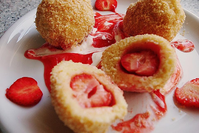 Erdbeerknödel mit zweierlei Dips