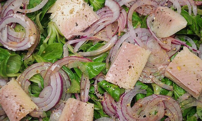 Feldsalat mit räucherforelle oder anderem räucherfisch