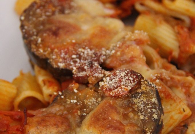 Gebackene Nudeln mit Auberginen