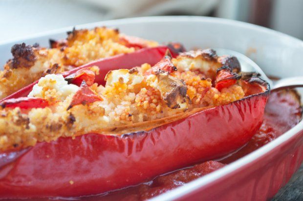 Gefüllte paprika mit schafskäse und couscous