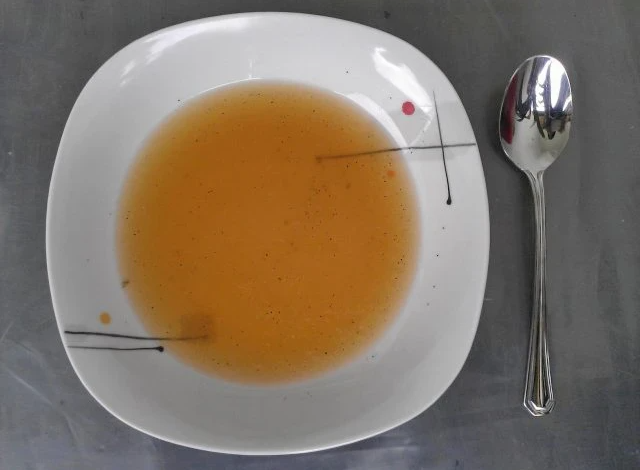 - Gemüse abseihen und die fertige Brühe mit Pfeffer, Salz und Muskat würzen.