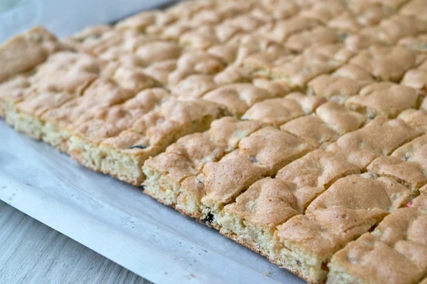 - Den Teig ca. 1 cm dick auf ein eingefettetes Backblech streichen und bei 160 Grad 20 – 25 Minuten backen. Noch heiß in kleine Streifen schneiden und genießen.