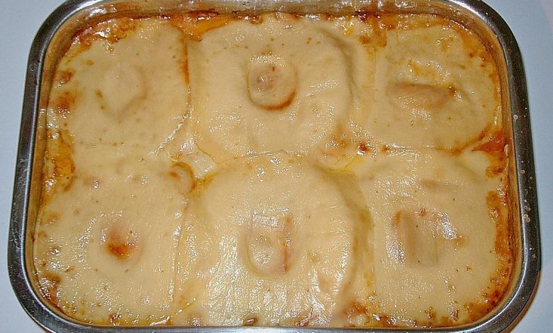 Die Auflaufform auf dem Rost für ca. 35 Minuten in den Ofen geben bei Ober-/Unterhitze: etwa 200 °C (vorgeheizt) Heißluftherd: etwa 180 °C (nicht vorgeheizt) Gas: Stufe 3 – 4 (vorgeheizt).