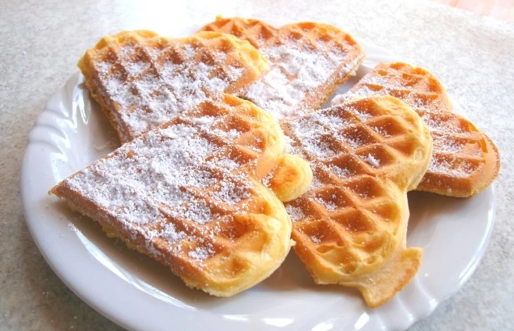 3. Aus dem Teig im Waffeleisen portionsweise goldgelbe Waffeln ausbacken, nach dem Backen mit Staubzucker bestäuben.