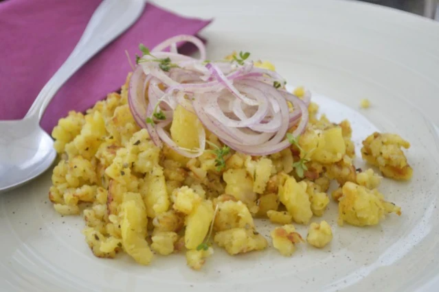 - Für den Kartoffelschmarrn die Kartoffel bissfest kochen.