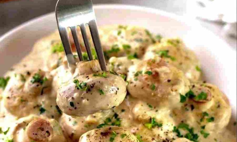 Geben Sie in einer großen 12-Zoll-Pfanne das Olivenöl, die Butter, den Knoblauch und die Pilze bei mittlerer Hitze hinzu, bis die Pilze weich sind (ca. 5 Minuten).