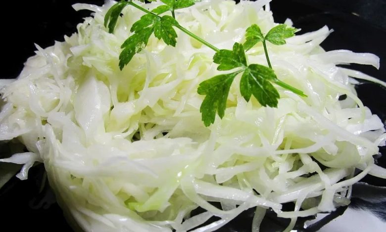• Kohl und Zwiebel raspeln. Öl, Essig, Zucker und Salz aufkochen und über den Kohl gießen.