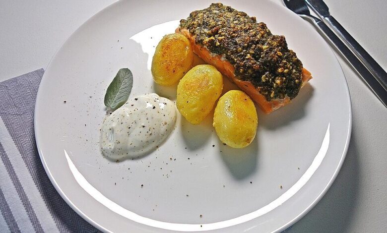 Lachs mit parmesan-kräuter-walnuss-kruste