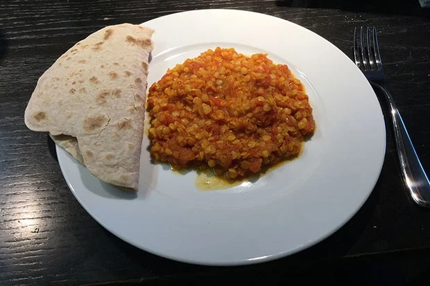 - Die Linsen in einem Sieb abspülen, bis das Wasser klar bleibt. In einem Topf mit Wasser kochen, bis die Linsen aufplatzen und bissfest sind (~15 min). Danach die Linsen abseihen.