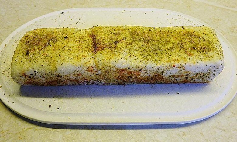 Den Speck vom Metzger so schneiden lassen, dass man ihn im Ofen schön auf jede Seite legen kann. Das heißt, jede Seite soll ungefähr gleich breit sein.