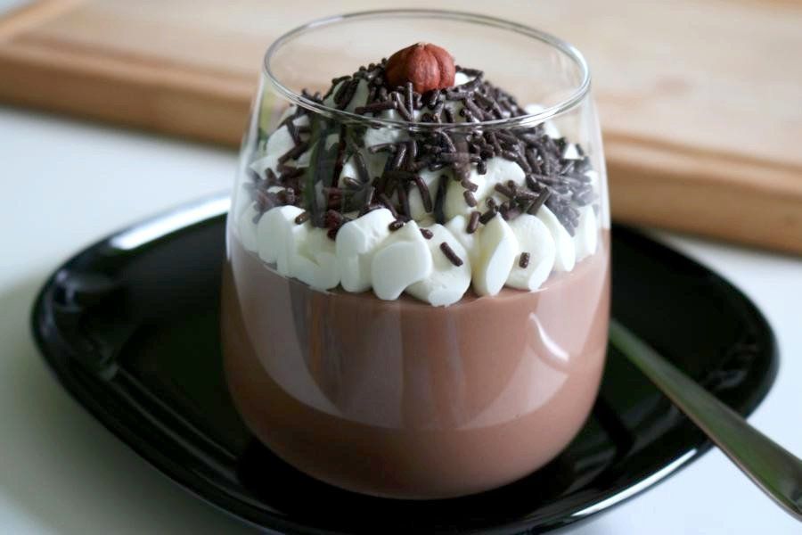 der nutella-pudding schmeckt noch besser, wenn man ihn mit einem klecks schlagobers und ein paar schokoladenstreuseln serviert