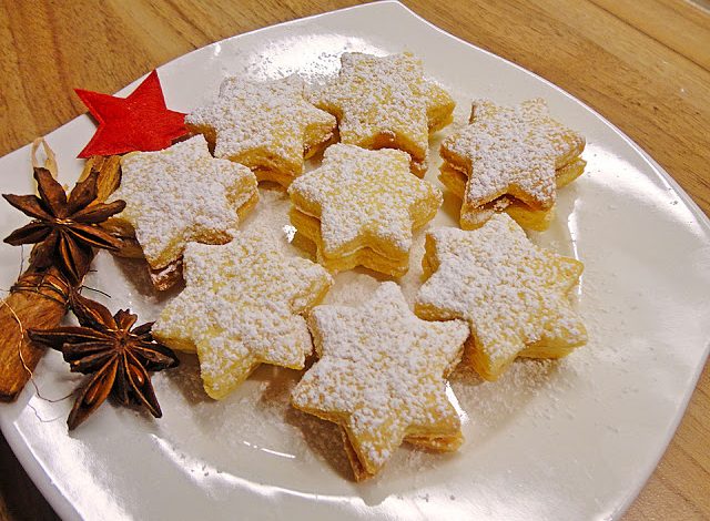 Butter mit Dotter und Zucker und Orangeback schaumig rühren, Mehl + Backpulver, Salz, Orangensaft untermengen und gut einkneten – 30 min kühl stellen – dann ausrollen und Sterne ausstechen – auf vorbereitetem Blech im vorgeheiztem Rohr bei 160° Umluft ca. 10 min backen – erkaltet mit Orangenmarmelade zusammensetzen und mit Staubzucker bestreuen.