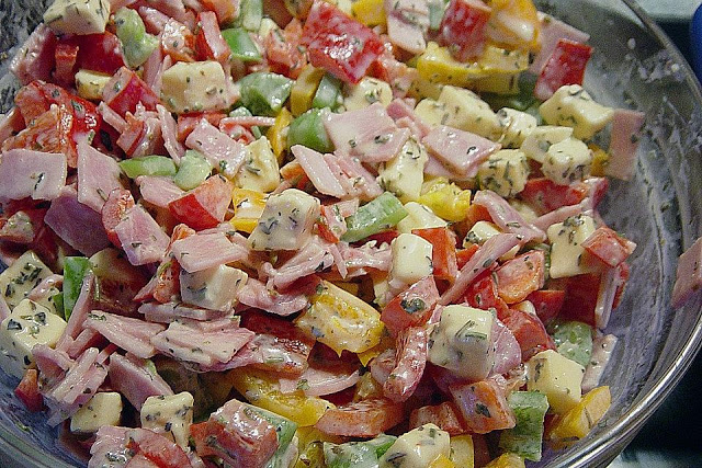 Paprika salat mit schinken & käse