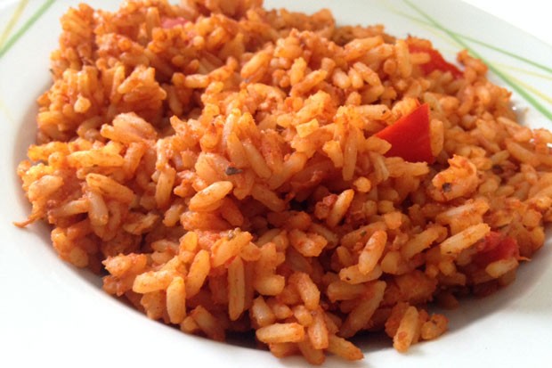 - Für den Paprikareis den Reis in Salzwasser gar kochen, dann gut abtropfen lassen.