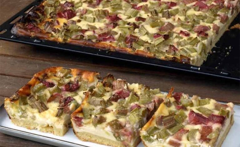 Quark Rhabarberkuchen mit Vanillepudding