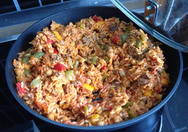 Reis Hackfleisch Pfanne mit Paprika