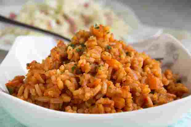 - Dann mit der Suppe aufgießen, den Reis und Paprika dazugeben und zugedeckt ca. 20 Minuten köcheln lassen, bis der Reis gar ist. Mit Salz, Pfeffer und Majoran kräftig würzen.