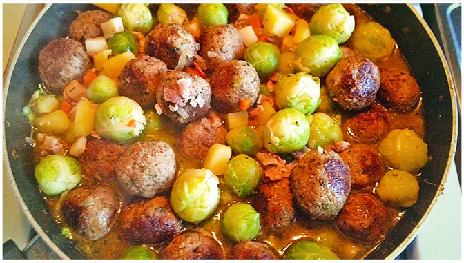 Rosenkohlgratin mit hackfleischkugeln, super lecker !