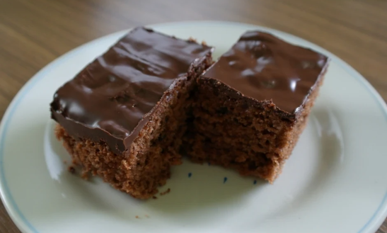 3. Schokoladenglasur im Wasserbad erwärmen und auf den ausgekühlten Kuchen streichen.