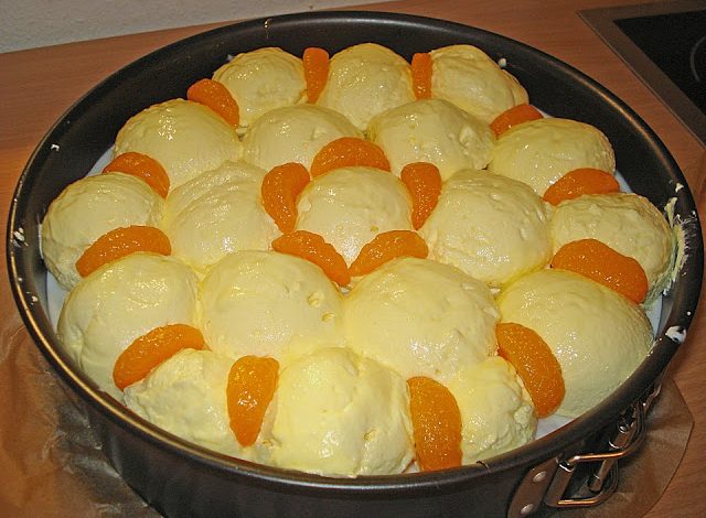 Die Gelatine einweichen, die Mandarinen abtropfen lassen und den Saft aufheben. Einige Mandarinen für die Dekoration aufheben. Joghurt, Vanillinzucker, Zucker und 125 ml Mandarinensaft miteinander verrühren. Die ausgedrückte Gelatine auflösen, unter die Joghurtcreme rühren und die Mandarinen unterheben. Einen Tortenring um den Boden legen, die Joghurtcreme darauf geben und die Torte 30 Minuten kühl stellen.