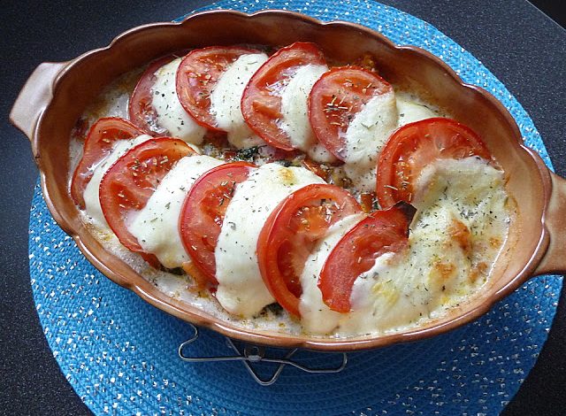 Das Fleisch trockentupfen, auf jeder Seite im heißen Öl anbraten und mit Salz und Pfeffer würzen. Fleisch, Tomaten und in Scheiben geschnittenen Mozzarella in eine Auflaufform geben und unter dem Grill ca. 10 Minuten überbacken.