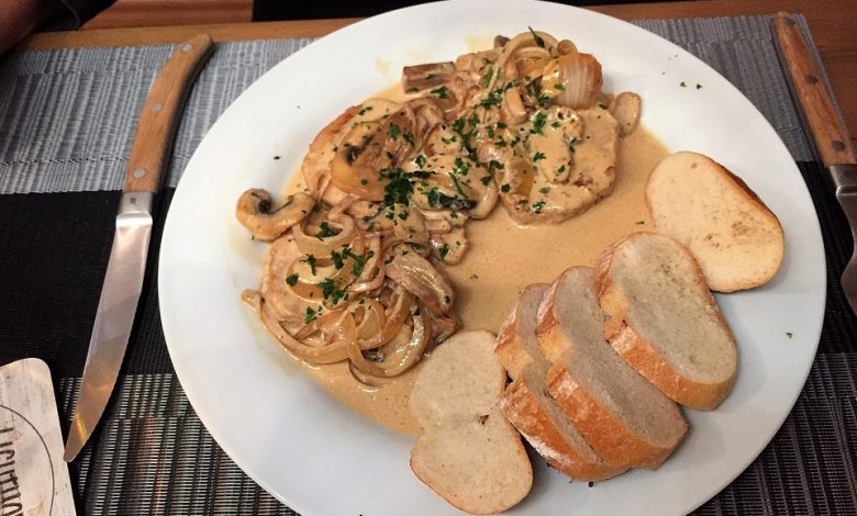 Die Nudeln zu den Medaillons geben und mit der Soße anrichten.