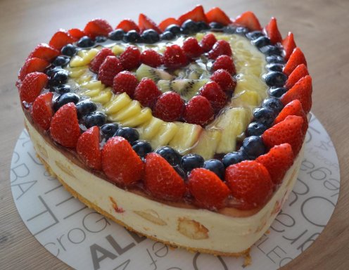 Als Abschluss den Tortendeckel mit Marmelade bestreichen und dann dicht mit den Früchten belegen. Tortengelee nach Packungsanleitung zubereiten und darüber gießen. Die Torte nochmals für mind. 30 Minuten kühl stellen bis das Gelee schön fest ist.