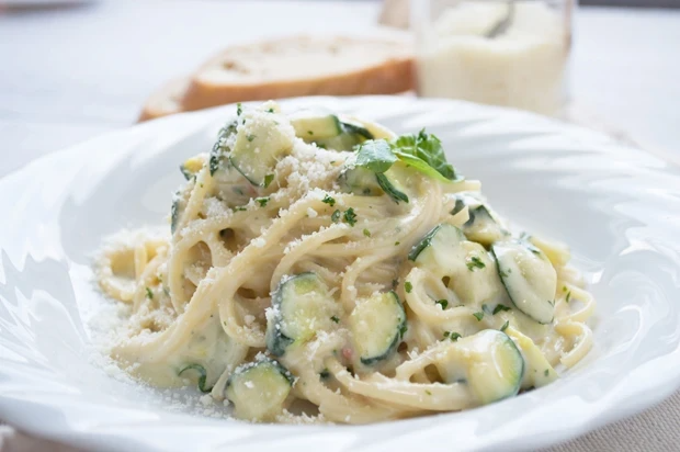 Spaghetti mit zucchini-sahne sauce
