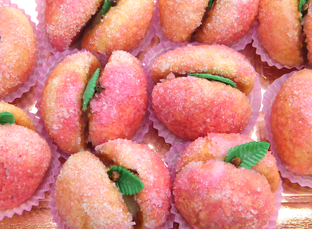 Etwa eine Stunde ruhen lassen, mit einem Tuch abgedeckt, dann kleine Halbkugeln formen und diese auf ein mit Backpapier ausgelegtes Backblech legen (wer Schwierigkeiten mit dem weichen Teig hat, einen Spritzbeutel ohne Tülle verwenden). Lassen Sie sie noch eine Stunde gehen, machen Sie den flachen Teil der Halbkugeln mit einer Nussschale leicht konkav und backen Sie sie im vorgeheizten Ofen bei 180° für 10-15 Minuten (oder bis sie goldbraun sind).