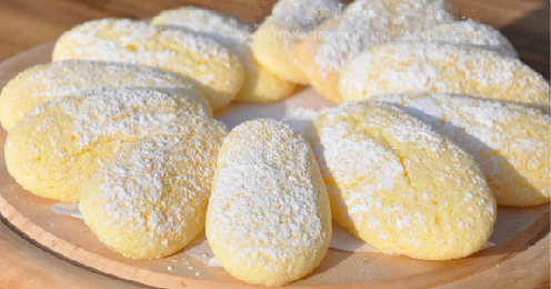 Alle Zutaten außer dem Puderzucker und dem Vanillezucker zu einem Teig verkneten. Aus dem Teig eine ca. 2 cm dicke Rolle formen und je etwa 1 cm dicke Stücke abschneiden.