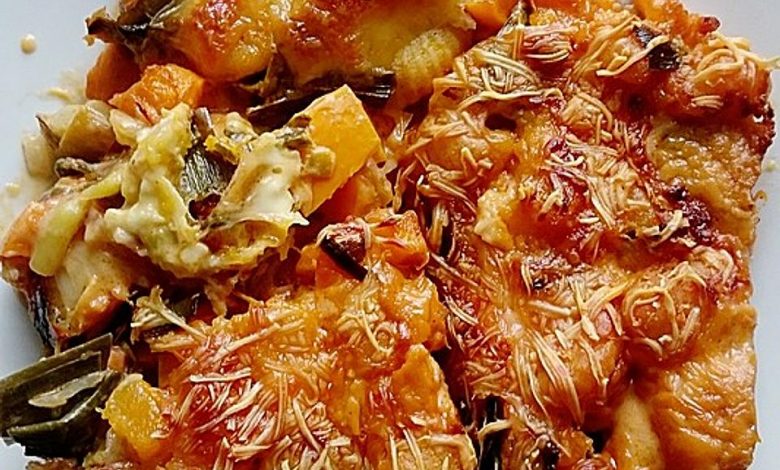 Vegetarischer Gnocchi-Kürbis-Lauch-Auflauf